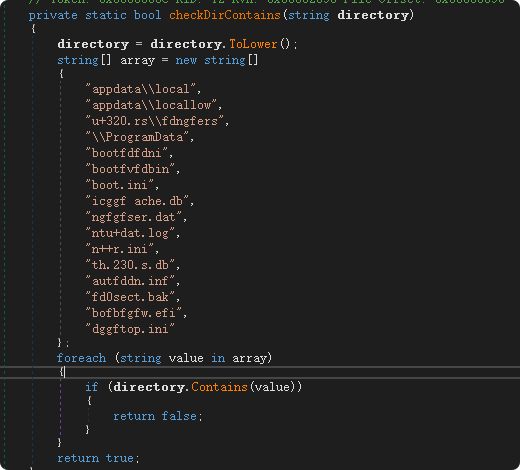 在SnowSoul加密过程中,首先会排除一些目录或文件,这些目录或文件看起来大部分为系统相关目录或文件,但部分名称有所不同,推测可能是拼写错误。