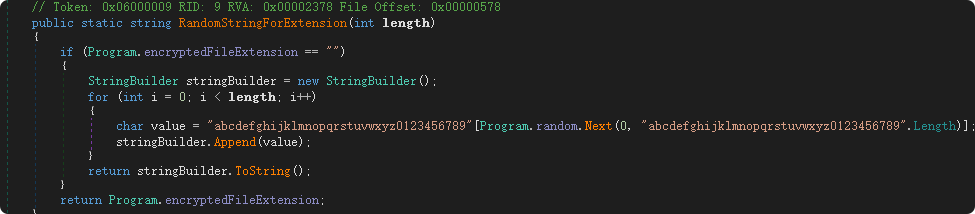SnowSoul还会尝试停止一些系统服务和进程,防止影响加密操作的占用。此外,被该勒索软件加密的文件扩展名共有532种,覆盖几乎所有常见的文档及数据文件扩展名。在加密文件操作完成后,被加密的新文件会被附加一个随机的加密扩展名。该扩展名是将随机的5个字符(随机范围为10个数字和26个小写字母):
