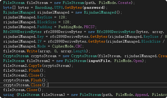 SnowSoul的文件加密操作采用了AES-CBC加密算法:
