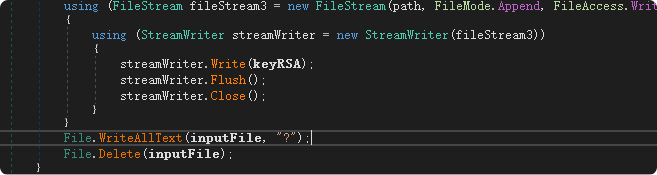 加密后覆盖原文件为“?”并将原文件删除,这一操作是用来防止对原数据进行恢复的典型数据破坏行为。