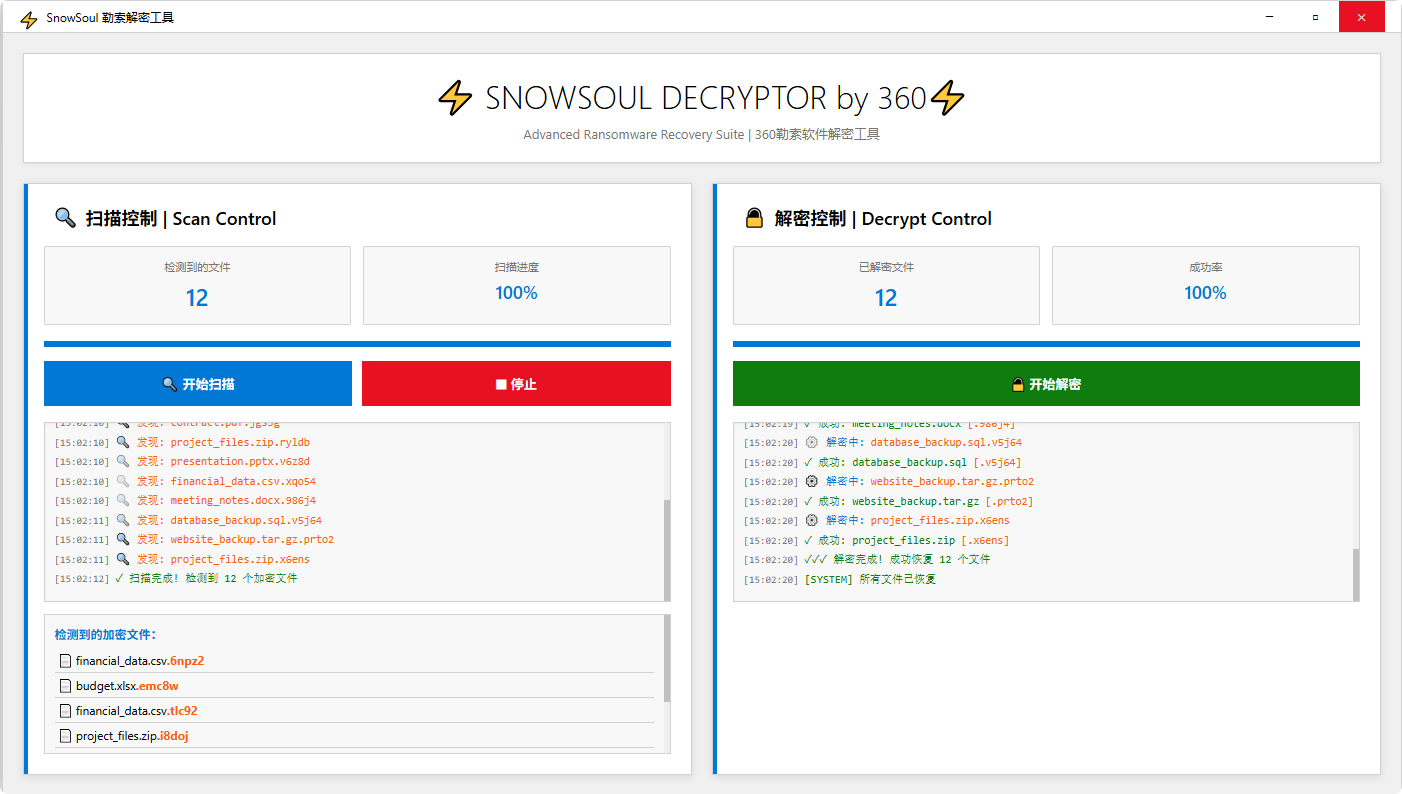 图12. “SnowSoul勒索解密工具”可有效解密文件并恢复数据