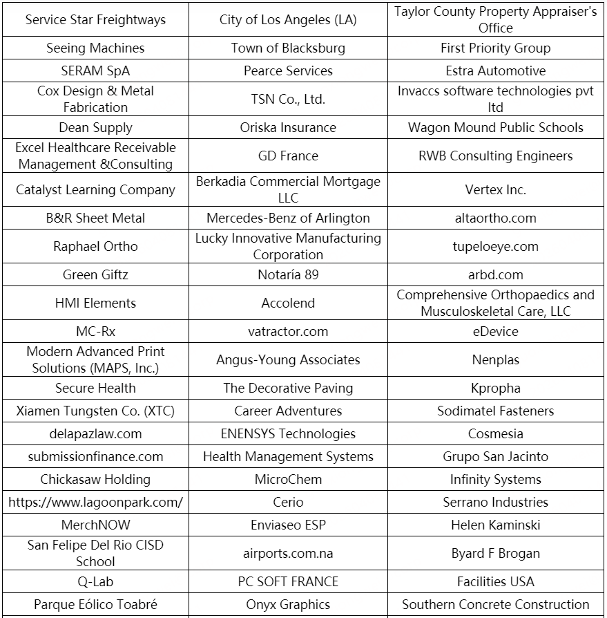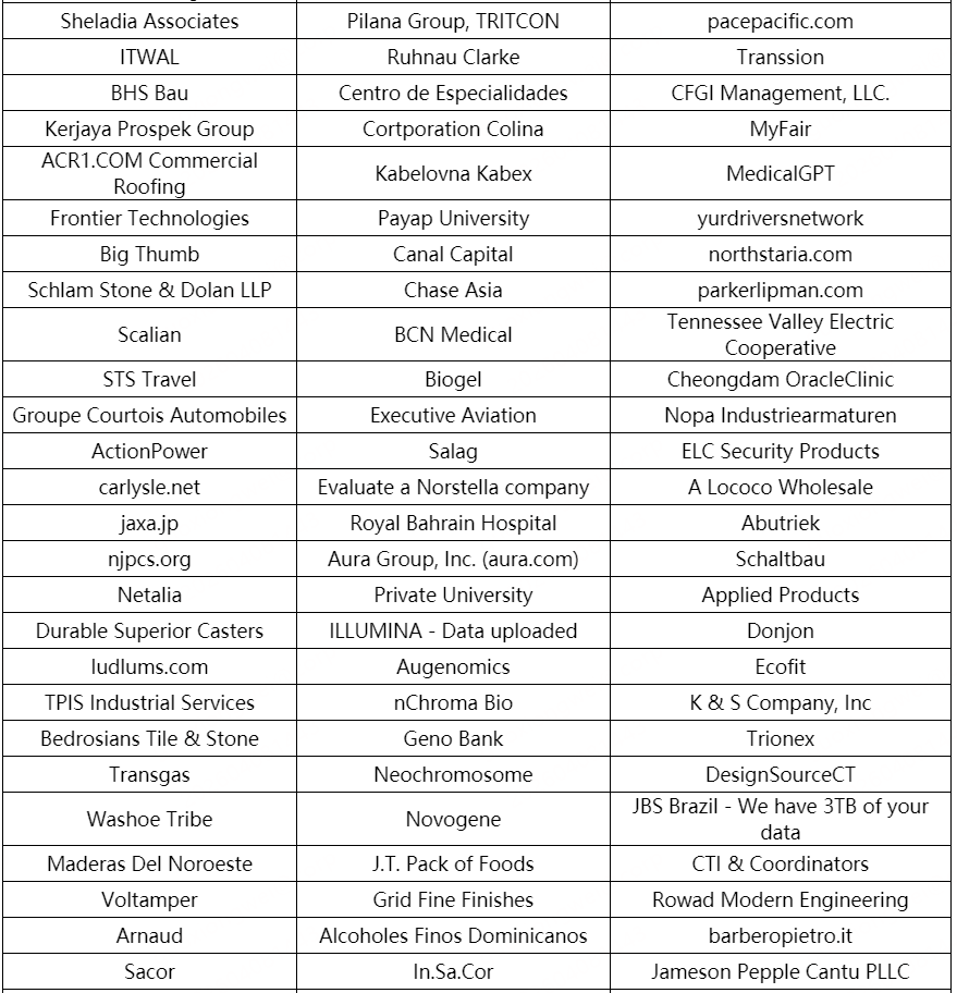 以下是本月被双重勒索软件家族攻击的企业或个人。若未发现数据存在泄露风险的企业或个人也请第一时间自查,做好数据已被泄漏准备,采取补救措施。