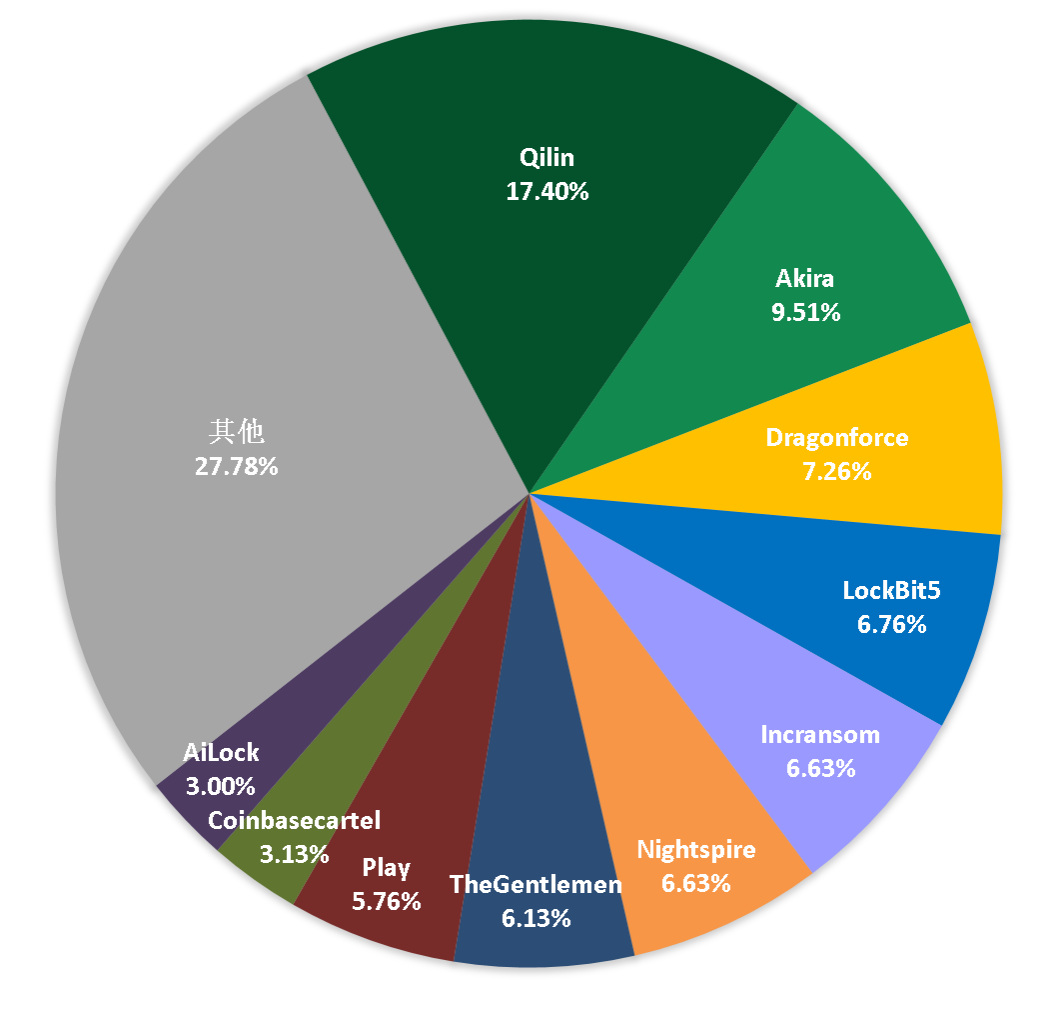 图8. 2026年3月通过数据泄露获利的勒索软件家族占比