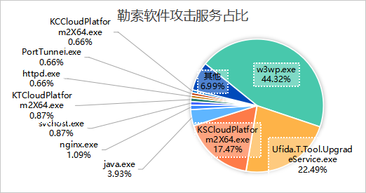 分析本轮突发的勒索软件攻击所针对的各类服务进程名称,其占比如下: