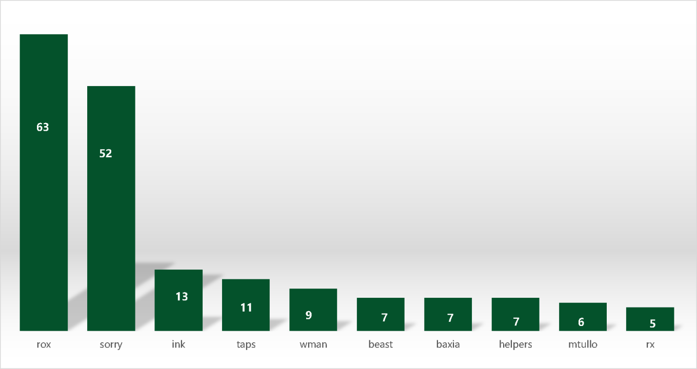以下是本月上榜活跃勒索软件关键词统计,数据来自360勒索软件搜索引擎。