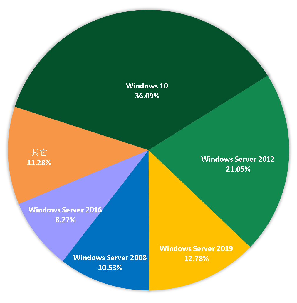 对本月受害者所使用的操作系统进行统计,位居前三的是:Windows 10、Windows Server 2012以及Windows Server 2019。