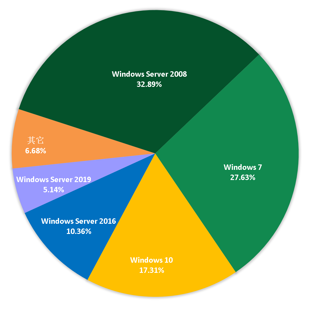 360系统安全产品,具有黑客入侵防护功能。在本月被攻击的系统版本中,排行前三的依次为Windows Server 2008、Windows 7以及Windows 10。