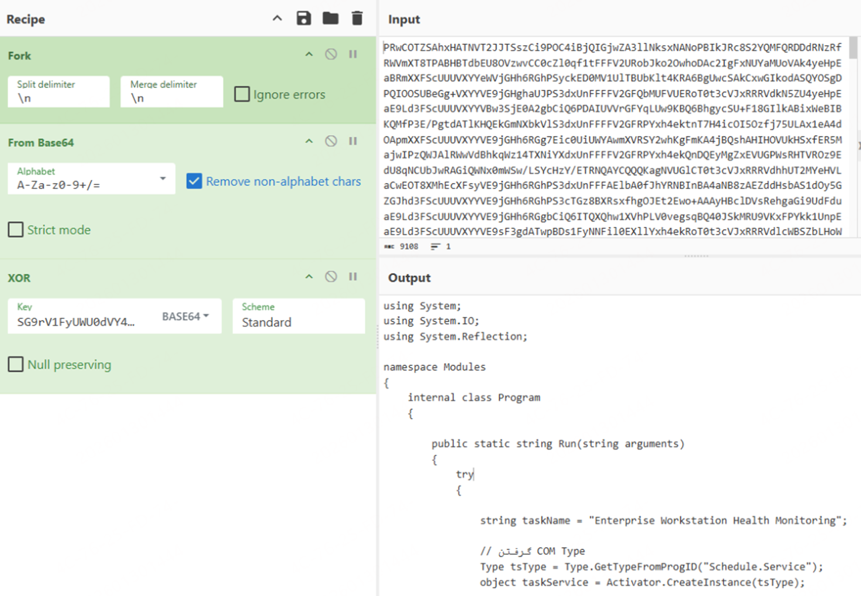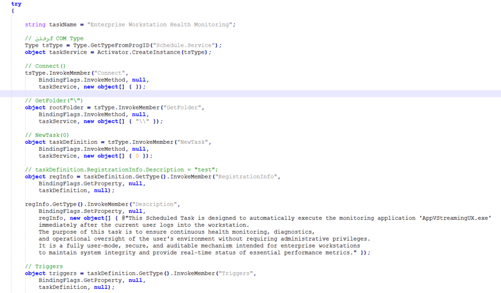“یستنهایی_جانباختگان_دی_1404_تهران_بخشدوم.xlsm”会将内嵌在恶意载荷中的C#源码释放到%TEMP%~[temp].cs。这是一个高度模块化的后门程序。