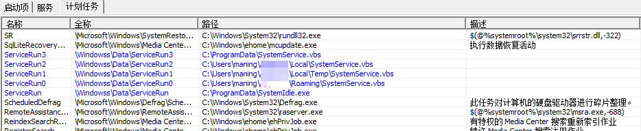 和上面相同,另外两处计划任务依然是通过调起VBS来启动木马。