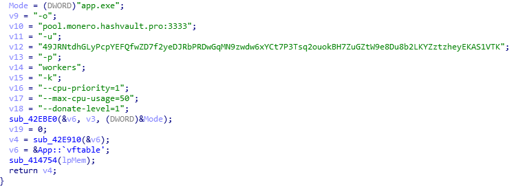 注入attribute.exe的程序是使用XMR开源挖矿代码编译,挖矿参数: