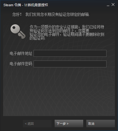 图6 盗号木马以安全认证为由要求输入绑定Steam的邮箱帐号密码