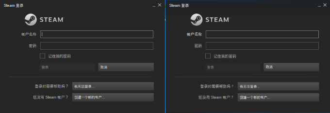 图5 伪造的登陆窗口(图左)和正常的登陆窗口(图右)