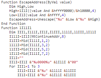 图3 挂马页面中的CVE-2018-8174漏洞利用代码