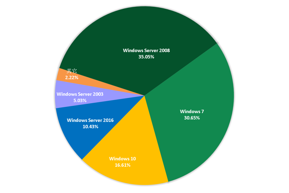 360系统安全产品,具有黑客入侵防护功能。在本月被攻击的系统版本中,排行前三的依次为Windows Server 2008、Windows 7以及Windows 10。