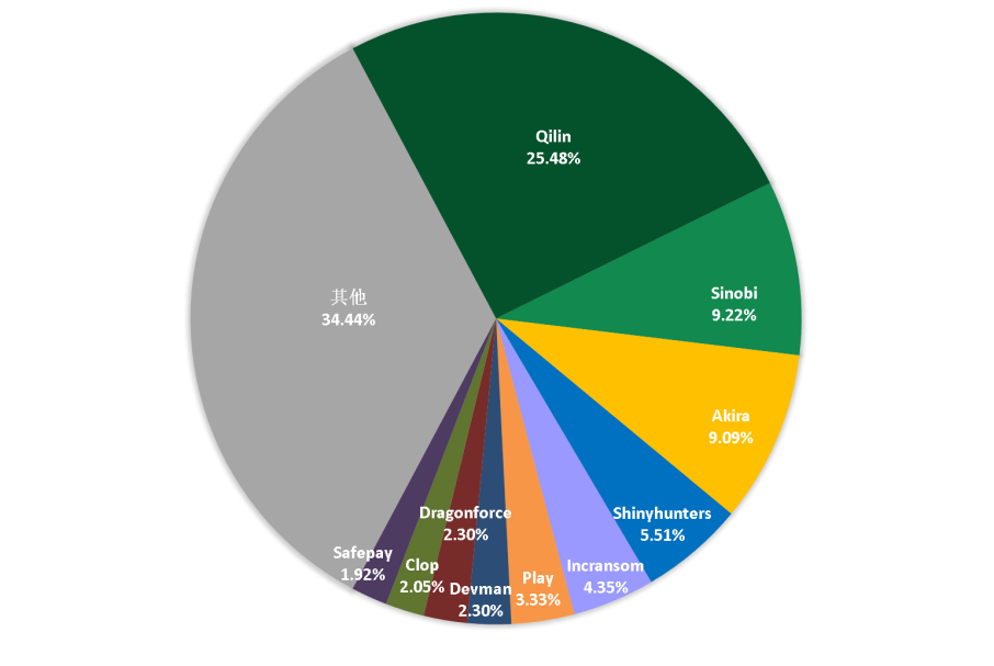 图4. 2025年10月通过数据泄露获利的勒索软件家族占比